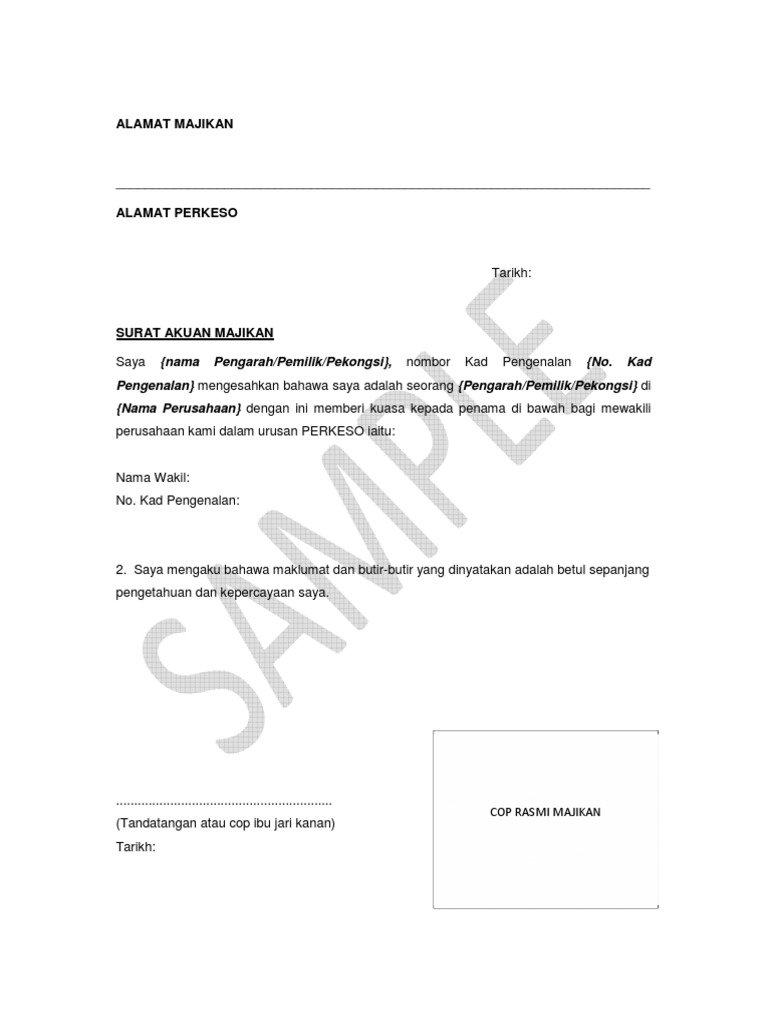 Pasir mk 18 83400 sri medan batu pahat johor. A letter of authorization representing the employers. Sebelum mengetahui contoh surat cerai, kamu juga harus paham apa itu surat cerai. Contoh surat izin tidak kerja alasan sakit. For more information and source, see on this link : Gambar contoh surat wakil majikan terbaik 2019. Kebenaran mewakili contoh surat wakil syarikat. Surat wakil merupakan kebenaran dan pengesahan daripada pemilik dokumen yang mewakilkan seseorang untuk menguruskan atau mengambil dokumen yang berkenaan. Sebelum ke pembahasan utama mengenai contoh surat lamaran kerja , sebaiknya kita ketahui terlebih dahulu format, cara, dan tips dalam penulisan surat lamaran kerja. For more information and source, see on this link : 5 jenis surat kuasa wakil power of 297 contoh surat kuasa download doc cara membuat. Contoh surat wakil majikan have a graphic associated with the other.contoh surat wakil majikan it also will include a picture of a sort that could be seen in the gallery of contoh surat wakil majikan. Gambar ini tersedia dalam format jpg png gif.